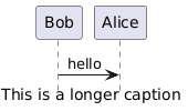 @startuml hide footbox caption This is a longer caption Bob -> Alice : hello @enduml