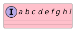 @startuml interface "a b c d e f g h i" #pink @enduml