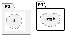 @startuml sprite $foo1 { FFFFFFFFFFFFFFF F0123456789ABCF F0123456789ABCF F0123456789ABCF F0123456789ABCF F0123456789ABCF F0123456789ABCF F0123456789ABCF F0123456789ABCF FFFFFFFFFFFFFFF } package P1 { cloud "a<$foo1>b" } package P2 [ {{ cloud "a<$foo1>b" }} ] @enduml
