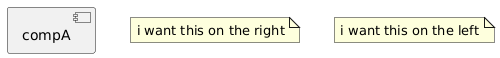 @startuml component "compA" as compA { } note as N1 i want this on the right end note note as N2 i want this on the left end note @enduml