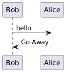 @startuml Bob -> Alice : hello Alice -> Bob : Go Away @enduml