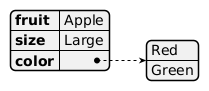 @startyaml skinparam dpi 300 fruit: Apple size: Large color: - Red - Green @endyaml