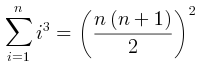 @startmath sum_(i=1)^n i^3=((n(n+1))/2)^2 @endmath