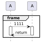 @startuml hide footbox participant " A " as a1 participant " A " as a2 group frame a1-->a2 : 1111 activate a1 activate a2 a1<--a2 : return deactivate a1 deactivate a2 end group @enduml