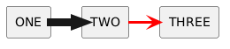 @startuml <style> .big { arrow { LineThickness 9 } } .red { arrow { LineThickness 3 Linecolor red } } </style> rectangle one as "ONE" rectangle two as "TWO" rectangle three as "THREE" one ->> two <<big>> two -> three <<red>> @enduml