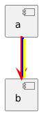 @startuml skinparam colorArrowSeparationSpace 5 component a component b skinparam arrowThickness 3 a -[#red;#blue;#yellow]->b @enduml