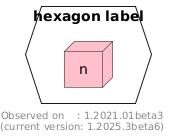 @startuml hexagon "hexagon label" as h { node #pink n } footer Observed on : 1.2021.01beta3\n(current version: %version()) @enduml