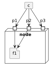 @startuml 'left to right direction card c node node { port p1 port p2 port p3 file f1 } c --> p1 c --> p2 c --> p3 p1 --> f1 p2 --> f1 @enduml