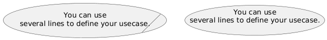 @startuml usecase/ UC1 as "You can use several lines to define your usecase." usecase UC2 [You can use several lines to define your usecase. ] @enduml