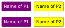 @startuml skinparam participantFontColor automatic participant "Name of P1" as S1 #purple participant "Name of P2" as S2 #yellow @enduml