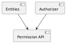 @startuml component Entities as e { } component Authorizer as a { } component "Permission API" as i { } e --> i a --> i @enduml