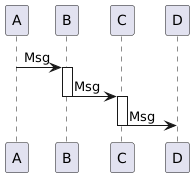 @startuml A -> B ++: Msg B -> C --++: Msg C -> D --: Msg @enduml