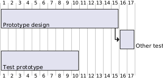 @startgantt [\n\nPrototype design] lasts 15 days then [\n\nOther test] lasts 2 days [\n\nTest prototype] lasts 10 days @endgantt