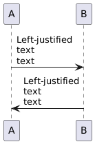 @startuml A -> B: Left-justified\ntext\ntext A <- B: Left-justified\ntext\ntext @enduml