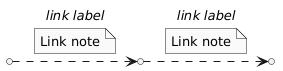 @startuml skinparam monochrome true usecase uU1 as " " usecase uU2 as " " usecase uU3 as " " uU1 .> uU2 : //link label// note bottom on link Link note end note uU2 .> uU3 : //link label// note bottom of link Link note end note @enduml
