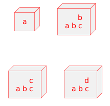 @startuml node "a" node "b\na b c" <style> node { FontColor green HorizontalAlignment right LineColor blue } </style> node "c\na b c" <style> node { FontColor red LineColor red } </style> node "d\na b c" @enduml