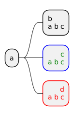 @startmindmap * a ** b\na b c <style> node { FontColor green HorizontalAlignment right LineColor blue } </style> ** c\na b c <style> node { FontColor red LineColor red } </style> ** d\na b c @endmindmap