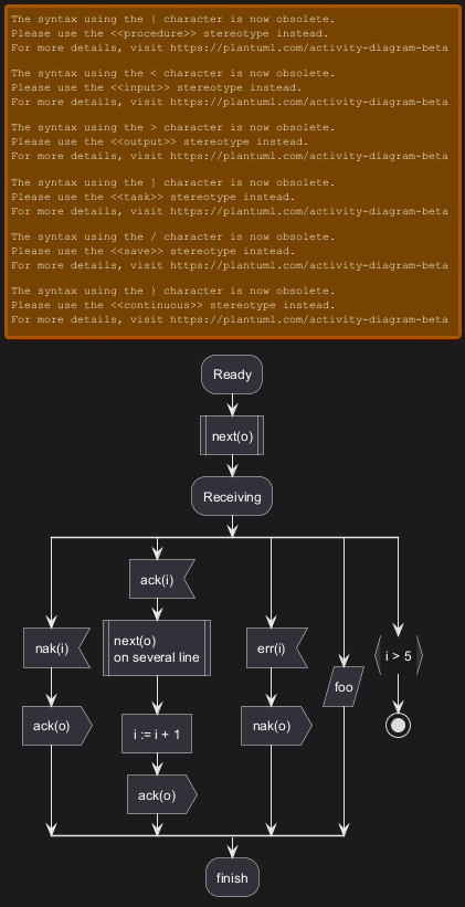 bisherige Syntax für Aktivitätsdiagramme wies einige Einschränkungen und Probleme bei der Wartbarkeit auf. Da wir diese Nachteile erkannt haben, haben wir eine komplett überarbeitete Syntax und Implementierung eingeführt, die nicht nur benutzerfreundlich, sondern auch stabiler ist.