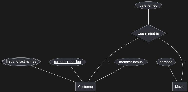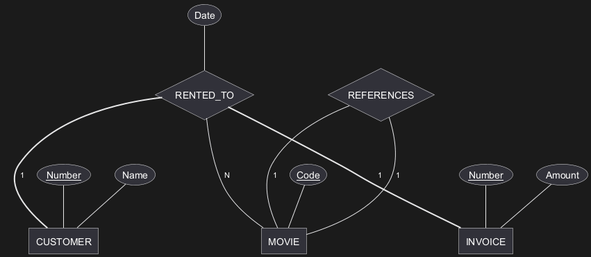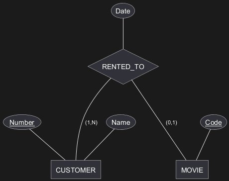 Entities, attributes and relationships can be given aliases to make the diagram more readable.