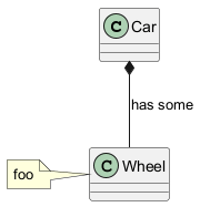 Car "1" *-- "*" Wheel [[http://plantuml.com/class-diagram]] : has some