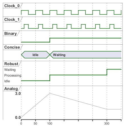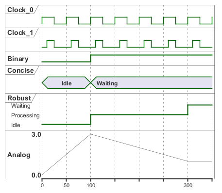 robust stellt eine Signallinie dar, welche den Übergang von verschiedenen Statusübergängen darstellt.