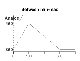 analog stellt den Statusübergang des Teilnehmers als analoges Signal dar, in dem die angegebenen Werte der Stati linear über die in der Zeitlinie gesetzten Zeitpunkte interpoliert werden.