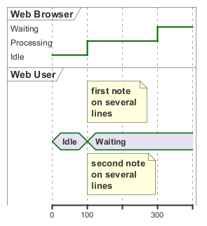 concise ist eine vereinfachte Darstellung um einen Statusübergang eines Teilnehmers darzustellen (Eignet sich am besten für die Darstellung von Meldungssignalen).