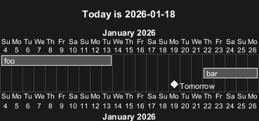 [bar] requires 5 days and starts %date("YYYY-MM-dd", $now + 4*24*3600)