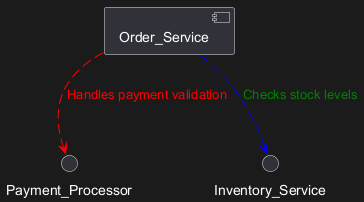 Order_Service --> Payment_Processor <<critical>> : Handles payment validation