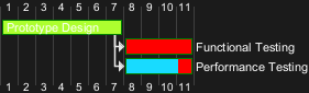 This gantt diagram shows how to visually distinguish task statuses (such as unstarted or undone) by applying different background and line colors.