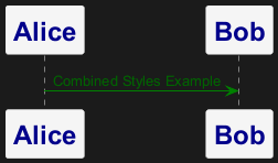 This example demonstrates how to define a global style and then override specific styles for elements in a sequence diagram.
