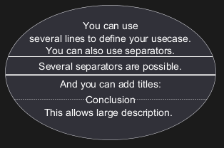 Use cases are enclosed using between parentheses (because two