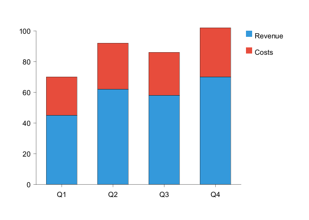 This will display a basic bar chart with quarterly data.