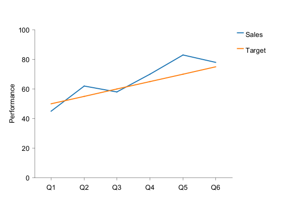 line "Sales" [45, 62, 58, 70, 83, 78] #1f77b4