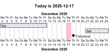 [bar] requires 5 days and starts %date("YYYY-MM-dd", $now + 4*24*3600)