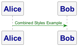 This example demonstrates how to define a global style and then override specific styles for elements in a sequence diagram.