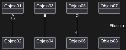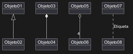 Las relaciones entre objetos son definidas usando los siguientes símbolos: