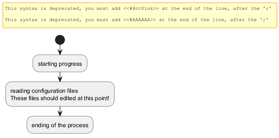 sintaxis anterior utilizada para los diagramas de actividad presentaba varias limitaciones y problemas de mantenimiento. Reconociendo estos inconvenientes, hemos introducido una sintaxis e implementación totalmente renovadas que no sólo son fáciles de usar, sino también más estables.