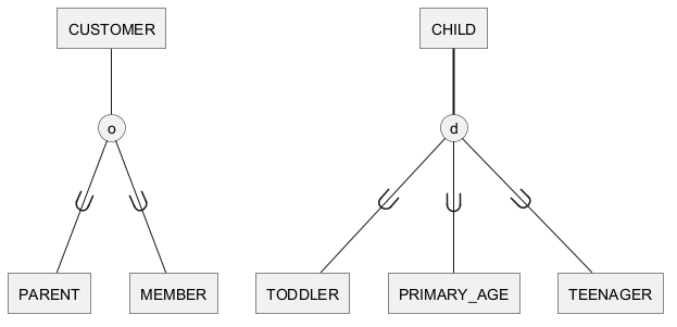 CUSTOMER ->- o { PARENT, MEMBER }