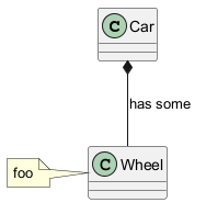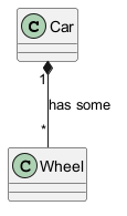 Car "1" *-- "*" Wheel [[http://plantuml.com/class-diagram]] : has some