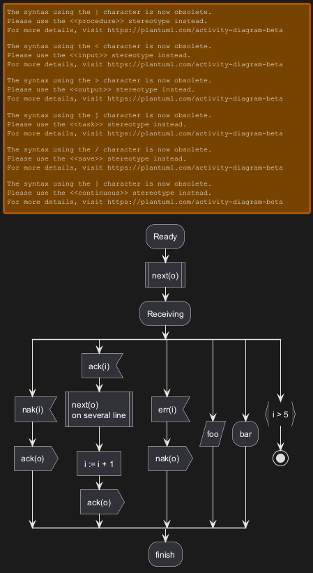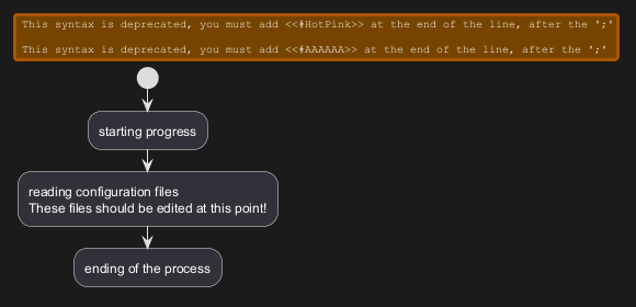syntaxe précédente utilisée pour les diagrammes d'activité présentait plusieurs limitations et problèmes de maintenabilité. Conscients de ces inconvénients, nous avons introduit une syntaxe et une implémentation entièrement remaniées qui sont non seulement conviviales mais aussi plus stables.