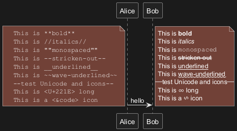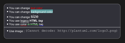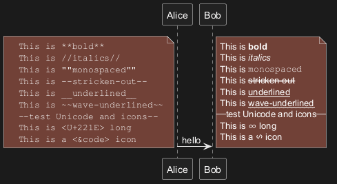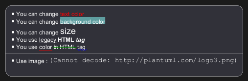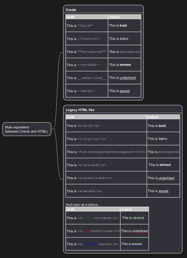 Un moteur créole léger est intégré à PlantUML afin de disposer d'un moyen normalisé d'émettre du texte stylé.
