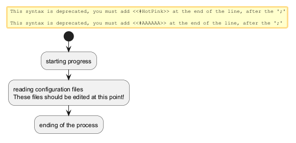 syntaxe précédente utilisée pour les diagrammes d'activité présentait plusieurs limitations et problèmes de maintenabilité. Conscients de ces inconvénients, nous avons introduit une syntaxe et une implémentation entièrement remaniées qui sont non seulement conviviales mais aussi plus stables.