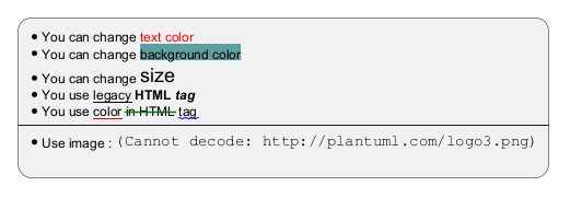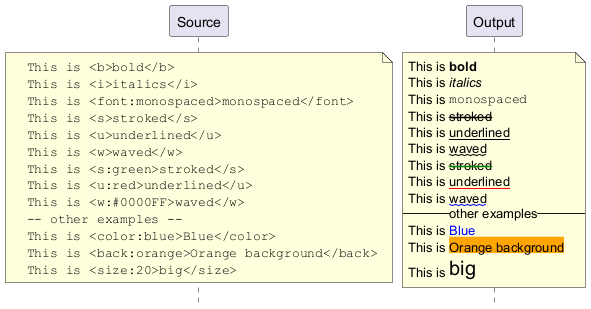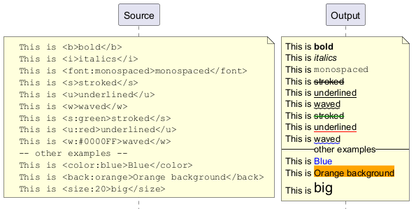 Un moteur créole léger est intégré à PlantUML afin de disposer d'un moyen normalisé d'émettre du texte stylé.