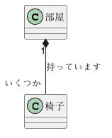 部屋 *-- 椅子 : "1" 持っています "いくつか"
