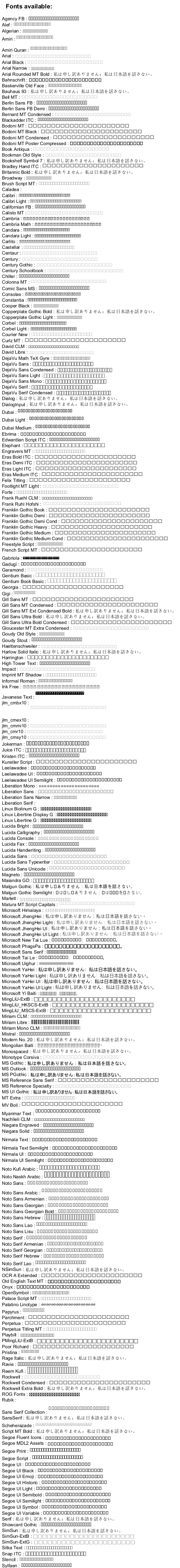 listfonts 私は申し訳ありません:私は日本語を話さない。