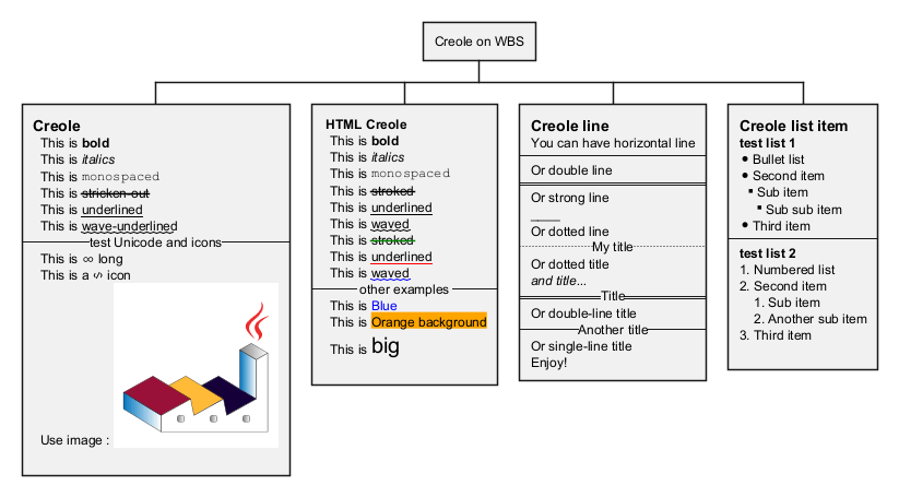 diagrammes textuels, la création et la mise à jour d'un WBS sont aussi simples que l'édition d'un document texte, ce qui est particulièrement utile pour gérer les changements au cours du cycle de vie d'un projet. Cette approche permet une intégration facile avec les