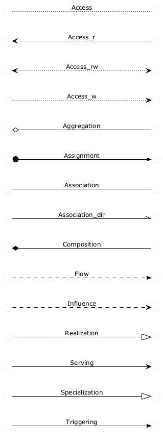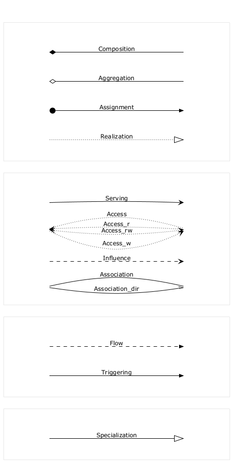 HTMLのカラーネームを使って、色の変更ができます。 また、いくつかのキーワード(Business, Application, Motivation, Strategy, Technology, Physical, Implementation)を使うこともできます。