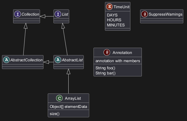クラス図は、プログラミング言語で伝統的に採用されている構文を真似て設計されています。