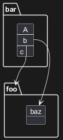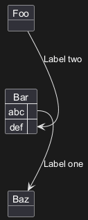 Bar::abc --> Baz : Label one